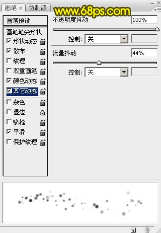 16、把笔刷大小设置为6像素,不透明度及流量都设置为:100%,,前,背景颜色不要变,如下图。