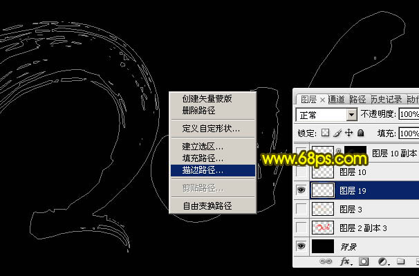 17、选择钢笔工具,在画布内右键选择“描边路径”,如下图。