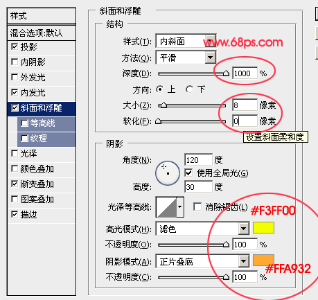 3.双击文字图层调出图层样式,参数设置如图3-7,参数需要根据实际字体大小设置。设置好后完成最终效果