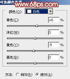 16、创建可选颜色调整图层,对红、黄、白进行调整,参数设置如图25