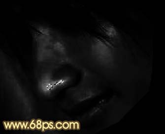4、前景颜色设置为黑色,然后选择画笔工具把除脸部以外的部分涂黑,如图6,确定后按住Ctrl键点蓝色副本通道调出选区如图7,回到图层面板,创建曲线调整图层,参数设置如图8,效果如图9。