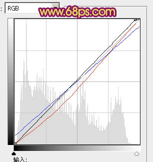 6、调出当前图层蒙版选区,创建曲线调整图层,对RGB,红,蓝进行调整,参数设置如图15 - 17,效果如图18。