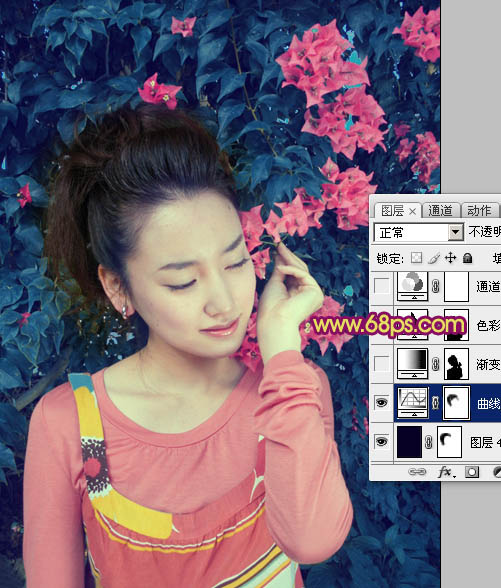 Photoshop调出外景美女图片甜美的古典粉红色(5)