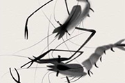 S鼠绘教程|标题:PS临摹齐白石的作品虾|内容:这个例子是仿一代宗师“齐白石”老人的一幅画做的,只有形态相似,仿不出大师画中的神韵。提供给大家练习PS的“钢笔工具”和“加深”“减淡”工具的运用,顺便学一学大师的构图布局。先看看最终效果图:最终效果 1、用钢笔工具画一个这样的形状,羽化两个像