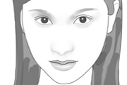 新建一个大小适当的文档,新建一个图层勾出大的轮廓线如下图。 2、勾出头发与面部的轮廓,去诶懂啊外轮廓线。 3、勾出耳朵与脖子。 4、勾出眼睛轮廓线,注意是双眼皮。 5、接下来是鼻子与嘴巴。勾完后降低图层的透明度。