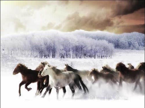 + J 复制一层加上蒙版用画笔工具把除马腿部分的地方擦除,然后应用蒙版,按Ctrl + T 向下适当拉长