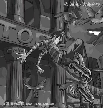 10、铺色的时候一定要注意:给处于不同光线下的同颜色的物体上色时,色调一定要分开。