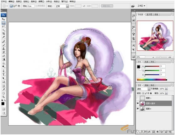 看到效果图有点不敢相信这是用PS画出来的。非常佩服作者的美术功力。新手可能绘制的时候有点难度,因为要刻画的细节非常多。需要一定的时间和耐性。最终效果