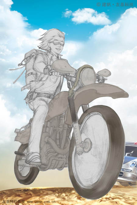 12、开始画越野摩托车的部分,关于画面中的车,仍需要资料。