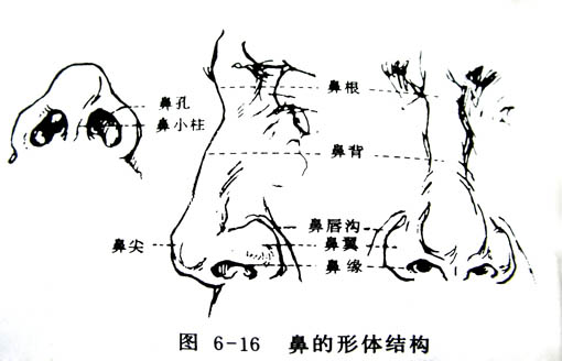 在鼻尖的部分有一个整个鼻子最亮的地方,是高光,在这个高光下面,就是鼻孔,它的色彩是比较暗的,朝天鼻除外。