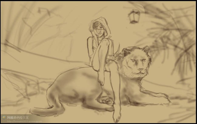 3、开始细化元素,女性参考元素我老婆,然后为了突出“虎年谁敢动我的妞”的主题思想,我把老虎的眼神改了,非常的凶悍。