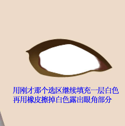 4、用刚才那个选区继续填充一层白色,再用橡皮擦掉白色露出眼角部分。