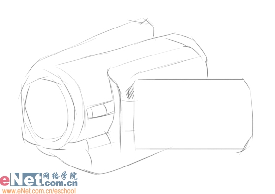 1.首先用画笔工具画出摄像机大的外形,不用画的很精确,主要是用来定位,也就是