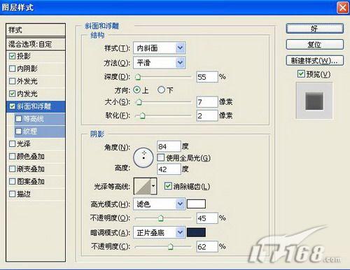 8、接着做计算器按钮,在计算器的图层组下在新建一个图层组,命名为“按钮”。选择工具箱中的“圆角矩形工具”,画一个圆角矩形,双击该图层设置图层样式,选择投影、内发光、斜面和浮雕、渐变叠加、描边,设置参数如图17-21所示,图像效果如图22所示。