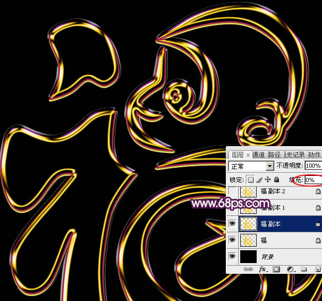 4、双击图层面板“福副本”图层缩略图,载入图层样式。