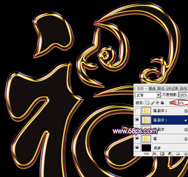 + J 把当前图层复制一层,得到“福 副本1”图层,然后在图层面板缩略图区域右键选择“清除图层样式”。