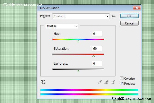 6、去“图像”>“调整”>“色相/饱和度”,改变饱和度为60。