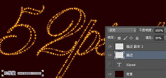 6、复制描边图层,得到描边副本图层,我们将原始的描边图层模式改为点光。