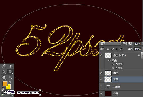 10、我们用椭圆工具画一个椭圆路径,新建图层“背景”,还是第五步一样的前景色和背景色,我们右击描边路径,做出漂亮的背景。