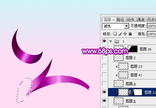 + Alt + G 创建剪贴蒙版,图层混合模式改为“滤色”,把前景颜色设置为淡紫色:#F7C4F2,用画笔把下图底部位置涂上高光。