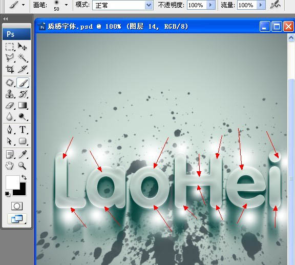 本教程的文字看上去并不是很复杂,不过制作过程是非常繁琐的,其中包含了很多细节的处理。如文字纹理部分都需要用一些滤镜及图层样式等来制作,文字表面的奶酪需要用画笔结合图