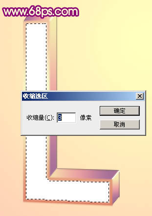 > 修改 > 收缩,数值为3,确定后按Ctrl + Alt + D 羽化3个像素,如图14。按Delete 删除,效果如图15。