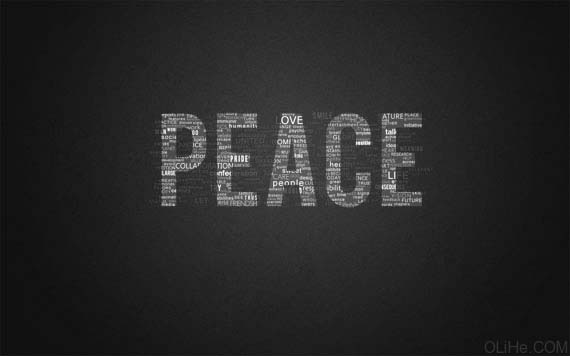 + E)。使你没合并的words组不可见。找到你的大的主文本层(在我这里,它是PEACE),按住CTRL键点击缩略图层。这样就加载了它的选区。