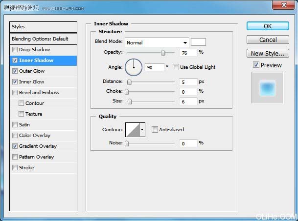 10、现在选择下一个混合选项,对所有字母使用内阴影,除了最后一个字母。