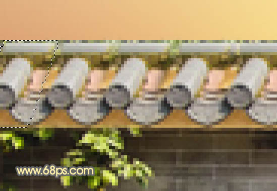 7、用钢笔勾出瓦片部分,转为选区后按Ctrl
