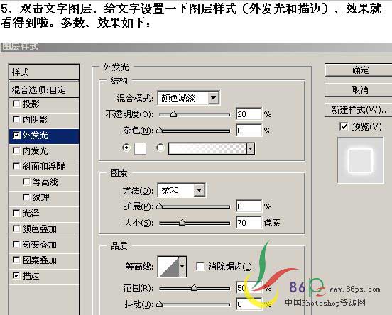 5、双击文字图层,调出图层样式,参数设置如下图。