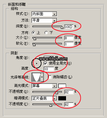 Black/明晰。颜色:#575757,然后调出图层样式,选择斜面和浮雕参数设置如图2,效果如图3