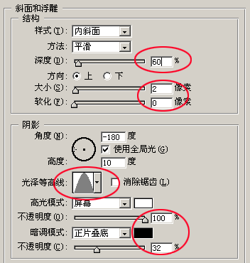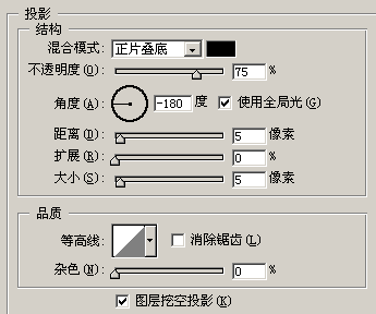 10.同样的方法在正下方也绘制一个矩形,如图32,然后把刚才所画的铁链几个图层合并。调出图层样式制作斜面和浮雕,投影设置如图33-34,效果如图35,并拷贝图层样式。