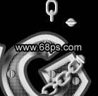 12.回到铁链的图层把铁链移到“G”字的右边变换角度如图41,确定后再复制一层适当的变换角度如图42,同样的方法再复制图层,变换角度后需要隐藏的部分用橡皮工具擦除图43