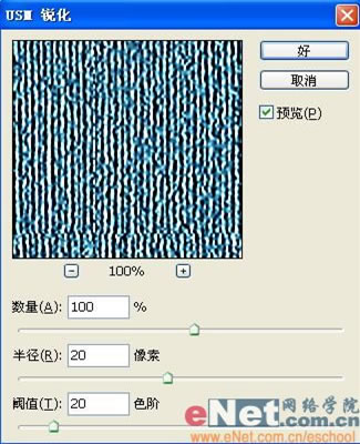 4、选择图层1,执行菜单栏中的“滤镜”“锐化”“USM锐化”命令,在弹出的对话框中设置参数如图5所示,图像效果如图6所示。