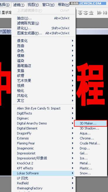 打开PS后,新建一个文件,输入文字,选择"滤镜/lokas