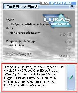 在菜单说选注册,然后打开我们下载文件夹中的那个注册码文件夹,然后把注册码复制到注册的地方,点击勾就OK了.下次启动时就已经是注册的了,现在我们就不启动了.