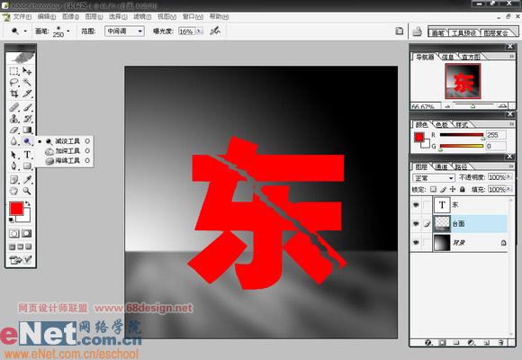 五、将“台面”层进行大致的光效处理。可以使用“加深”、“减淡”工具。