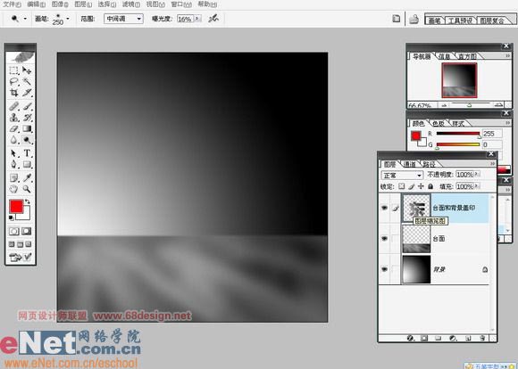 八、删除文字层后,并没发现有文字,这是因为字和其后面的背景是同一个颜色,所以湮没在背景中了。下面是要将其呈现出来。