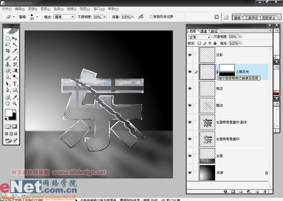 二十二、用湿边画笔,在新建图层上,画上玻璃的调光,如图。