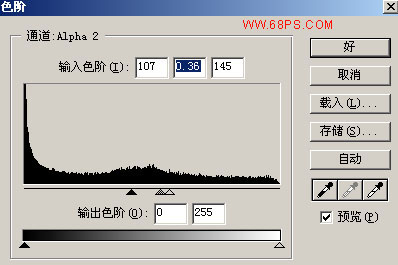 5.按 Ctrl + L 调出色阶控制棉板,参数设置如图6 效果如图7