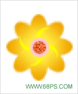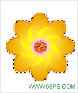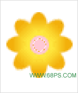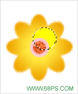 8.在花瓣的图层上面新建一个图层,用椭圆选取工具绘制正圆如图19,然后填充黄色,在把选区适当的移动位置,按Delete