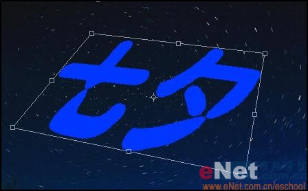 4、按Ctrl+T键为文字添加自由变形框,按住Ctrl键进行拖动,改变文字的形状,效果如图03所示。