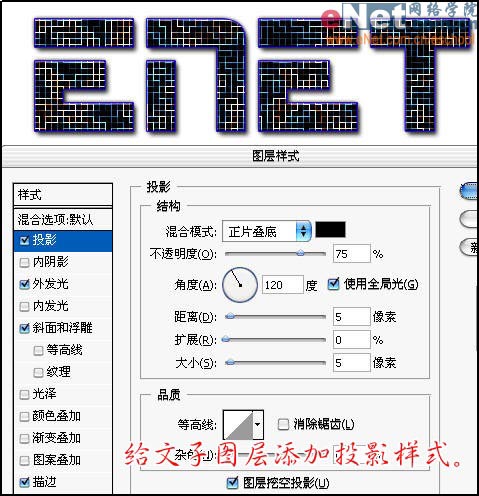 10、给文字图层添加投影样式。