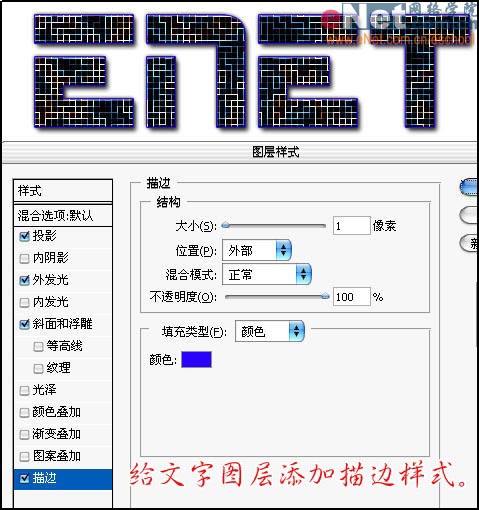 13、给文字图层添加描边样式。