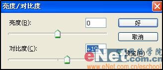 11、选择图层1,在图层面板底部单击“创建新的填充或调整图层”按钮,在弹出的菜单中执行“亮度/对比度”命令,在弹出的对话框中设置参数如图16所示,单击确定,效果如图17所示。
