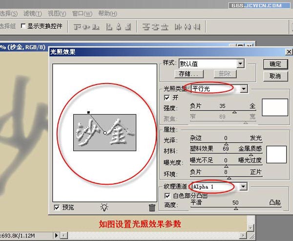 十六、如图设置光照效果参数。