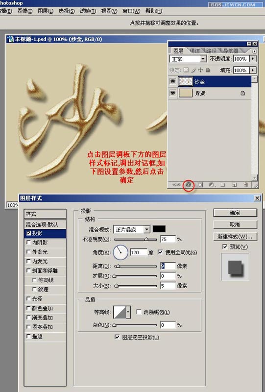 二十四、点击图层调板下方的图层样式标记,调出对话框,如下图设置参数,然后点击确定。