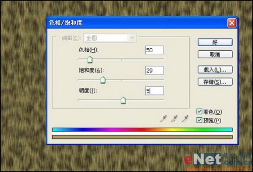 21、在图层面板底部单击“创建新的填充或调整图层”按钮,在弹出的菜单中选择“色相/饱和度”命令,在弹出的对话框中设置参数,效果如图38所示。