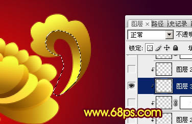 9、新建剪切图层后,再把花纹边缘的高光、暗调、反光等部分做出来,过程如图18