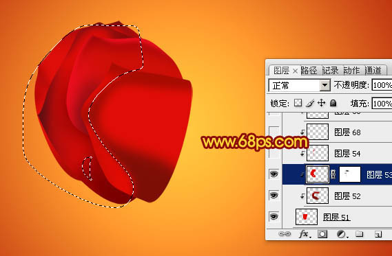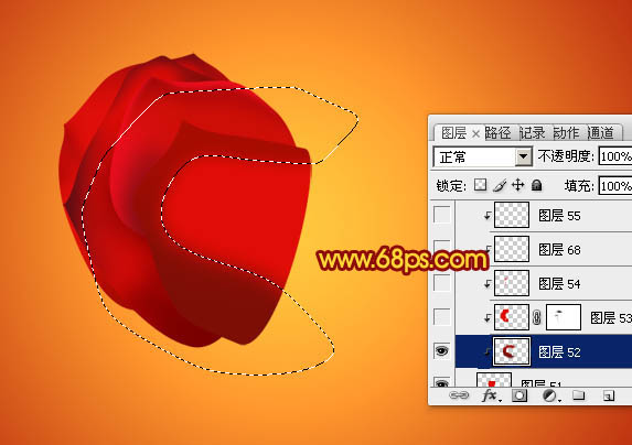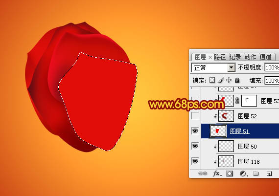 火焰用涂抹工具制作是最快的,不过不太好控制。这里主要是用钢笔工具来完成,思路非常简单,用钢笔逐条勾出火焰路径,转为选区,羽化后填充相应的颜色即可。最终效果